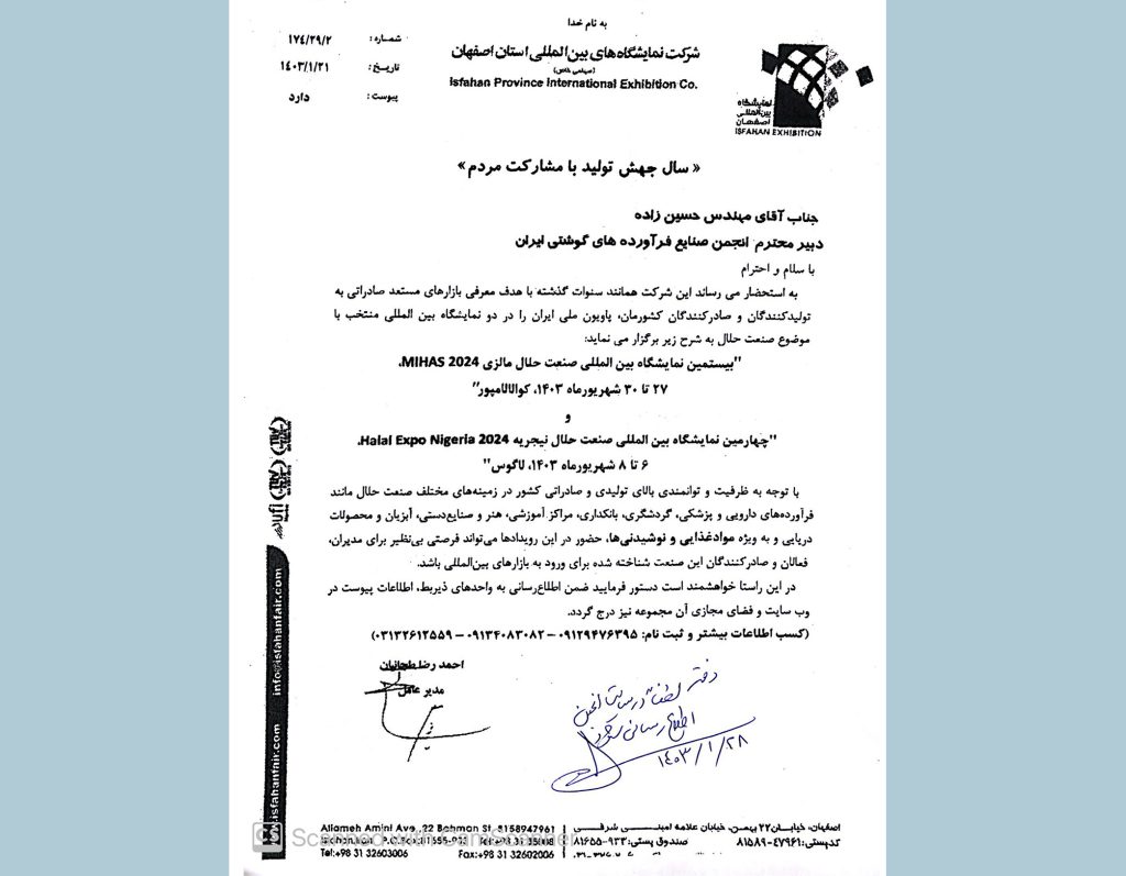 برپایه این گزارش «بیستمین نمایشگاه بینالمللی صنعت حلال مالزی MIHAS 2024 27 تا 30 شهریورماه 1403، کوالالامپور» و «چهارمین نمایشگاه بینالمللی صنعت حلال نیجریه Halal Expo Nigeria 2024 6 تا 8 شهریورماه 1403، لاگوس» برگزار میشود.