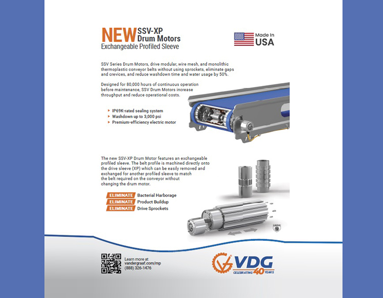 موتورهای SSV-XP برخلاف سیستم‌های سنتی، بدون نیاز به چرخ‌دنده و زنجیر (sprockets) کار می‌کنند، به این معنا که دیگر هیچ فضای خالی برای پنهان شدن آلودگی وجود ندارد. این ویژگی نه تنها باعث کاهش ۵۰ درصد در زمان و مصرف آب برای شست‌وشو می‌شود، بلکه سلامت محصولات و ایمنی غذایی را نیز تا سطح بالایی تضمین می‌کند.