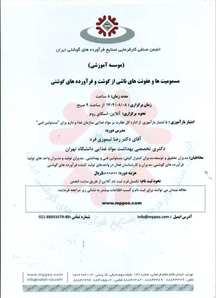دوره آموزشی مسمومیتها و عفونتهای ناشی از گوشت و فرآوردههای گوشتی