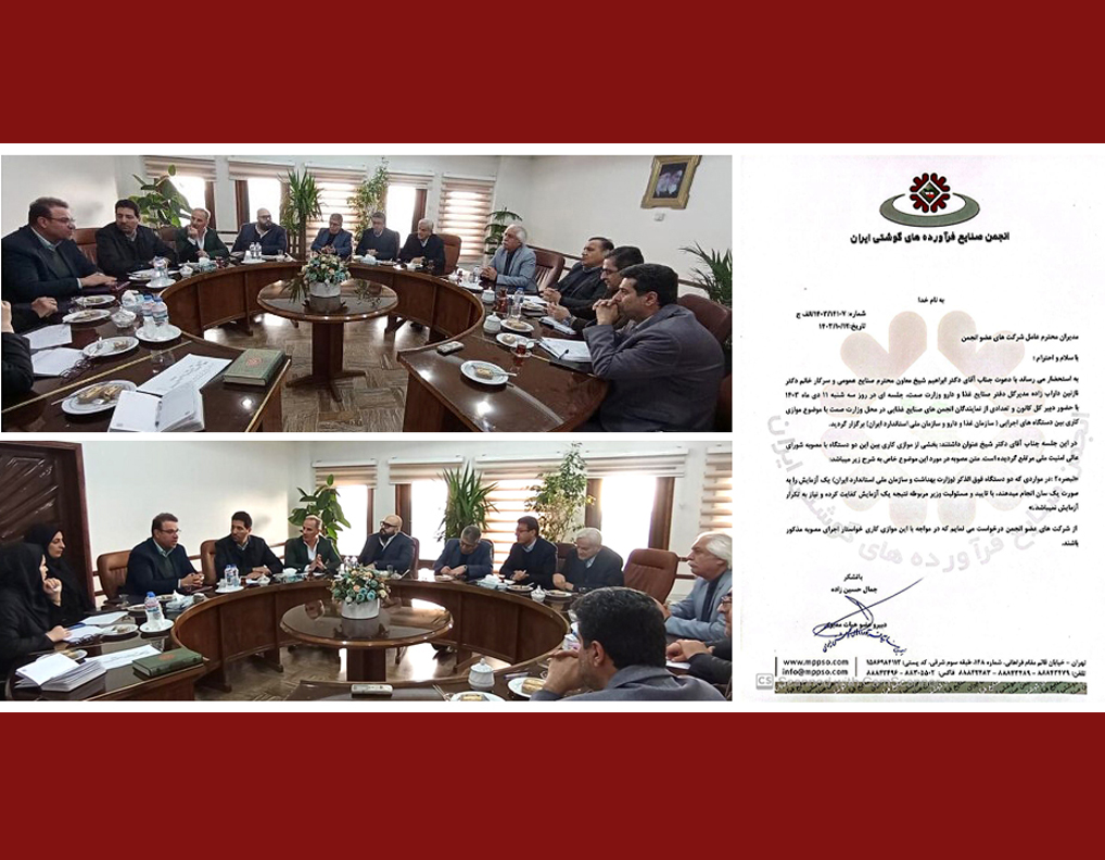 به گزارش روابط عمومی انجمن صنایع فرآوردههای گوشتی ایران روز گذشته در جلسهای که با حضور دکتر ابراهیم شیخ، معاون صنایع عمومی وزارت صمت و نمایندگان تشکلهای صنایع غذایی از جمله مهندس جمال حسینزاده، دبیر انجمن صنایع فرآوردههای گوشتی ایران برگزار شد، مقرر شد مصوبه دیماه جاری درخصوص حل معضل موازیکاری این دو سازمان سریعاً اجرایی شود.